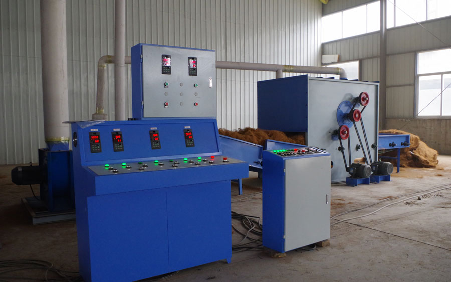 本生產(chǎn)線(xiàn)是利用椰棕纖維和低熔點(diǎn)環(huán)保纖維通過(guò)高溫?zé)犸L(fēng)穿透粘合定型而成,椰棕墊是床上用品、服裝家具、沙發(fā)高級(jí)的芯墊材料