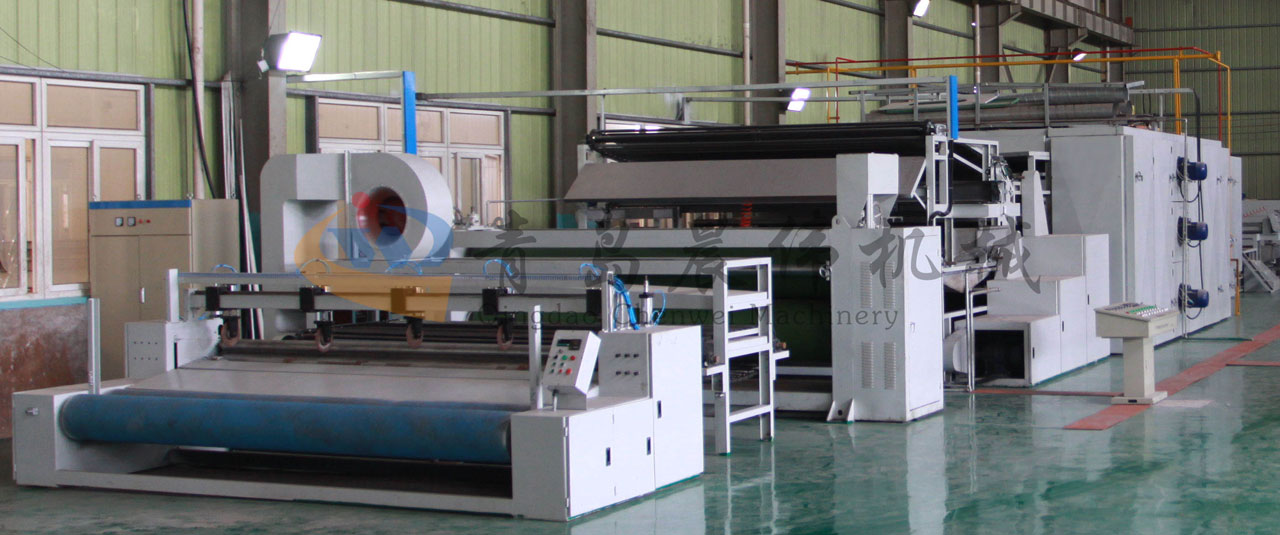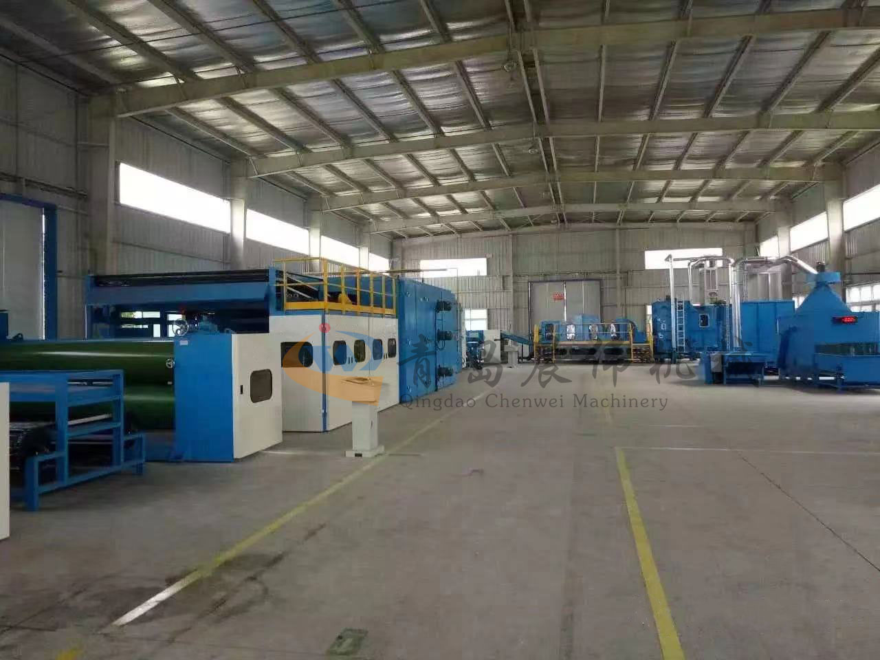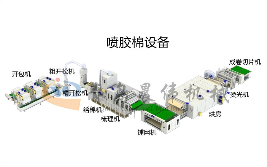開包機(jī)-開松機(jī)-振動給棉機(jī)-梳理機(jī)-鋪網(wǎng)機(jī)-烘房-燙光機(jī)-成卷切片機(jī)