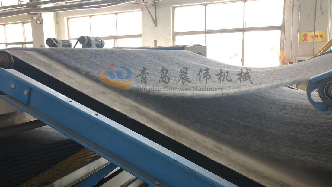 5. CWPW-鋪網機:用于將梳理纖網通過移動小車交叉折疊為所需幅寬和定量的多層纖網,以供后道工序使用。鋪網輥采用特殊結構,加裝壓網輥和導流板,不飄網不起皺,五只大功率電機精確控制各部件的運動,電動輸出簾高度調節(jié)裝置