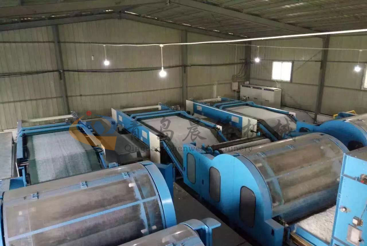 該生產(chǎn)線用于生產(chǎn)高檔家用紡織材料仿絲棉, 仿絲棉廣泛應(yīng)用于服裝、床上用品、家具等。根據(jù)客戶要求可分四機(jī)頭、六機(jī)頭、七機(jī)頭等。機(jī)頭越多,產(chǎn)量越高。