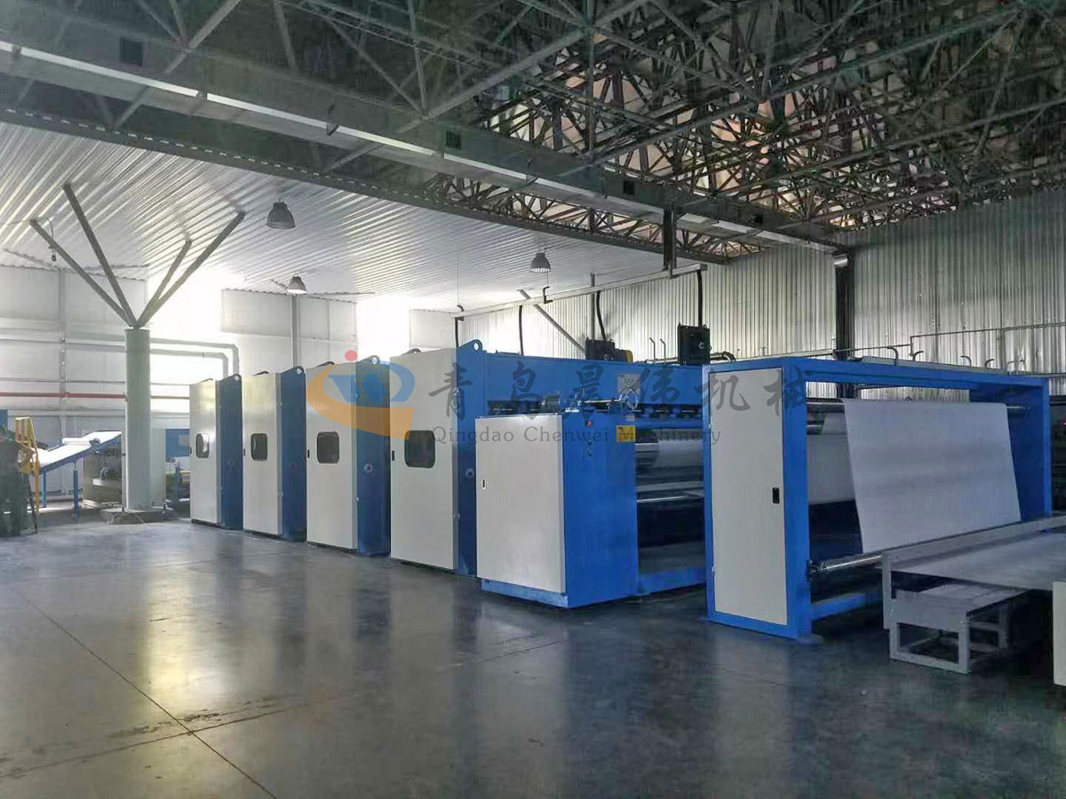 4. CWSL-梳理機(jī):單錫林梳理機(jī)主要是將前道工序棉網(wǎng)層進(jìn)行單纖維狀態(tài)分散過程,并且等寬均勻的輸出到鋪網(wǎng)機(jī),單錫林梳理機(jī)適用于針刺棉、仿絲棉等無紡布生產(chǎn)線最核心部位。高速高產(chǎn),出網(wǎng)速度高,有效工作機(jī)幅寬,產(chǎn)量高梳理效果好,設(shè)備穩(wěn)定不易故障。