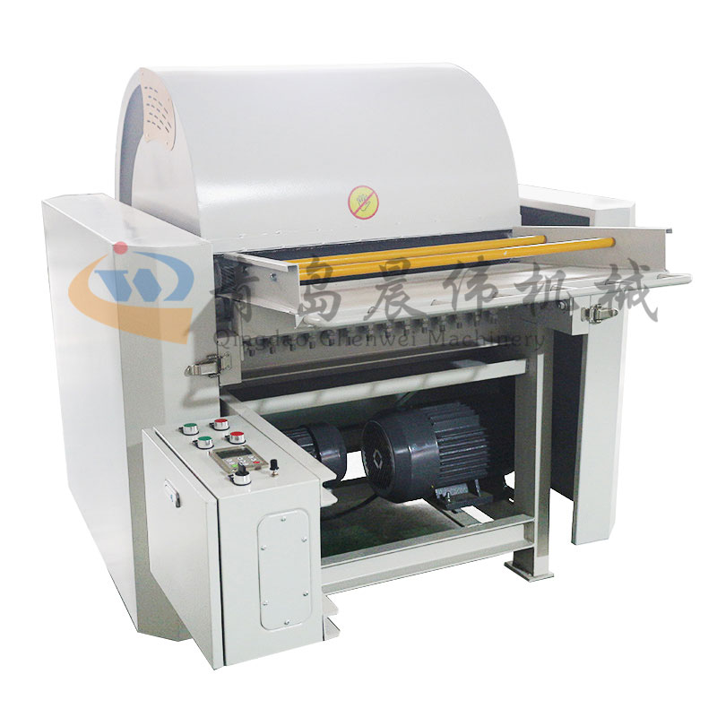 開松機:本機開松效果好,不易纏棉,產(chǎn)量高。把纖維、原料經(jīng)喂入平簾輸送至喂入羅拉,再由開松輥高速開松后,經(jīng)輸棉風機以適量的風量輸送纖維原料供后道工作使用